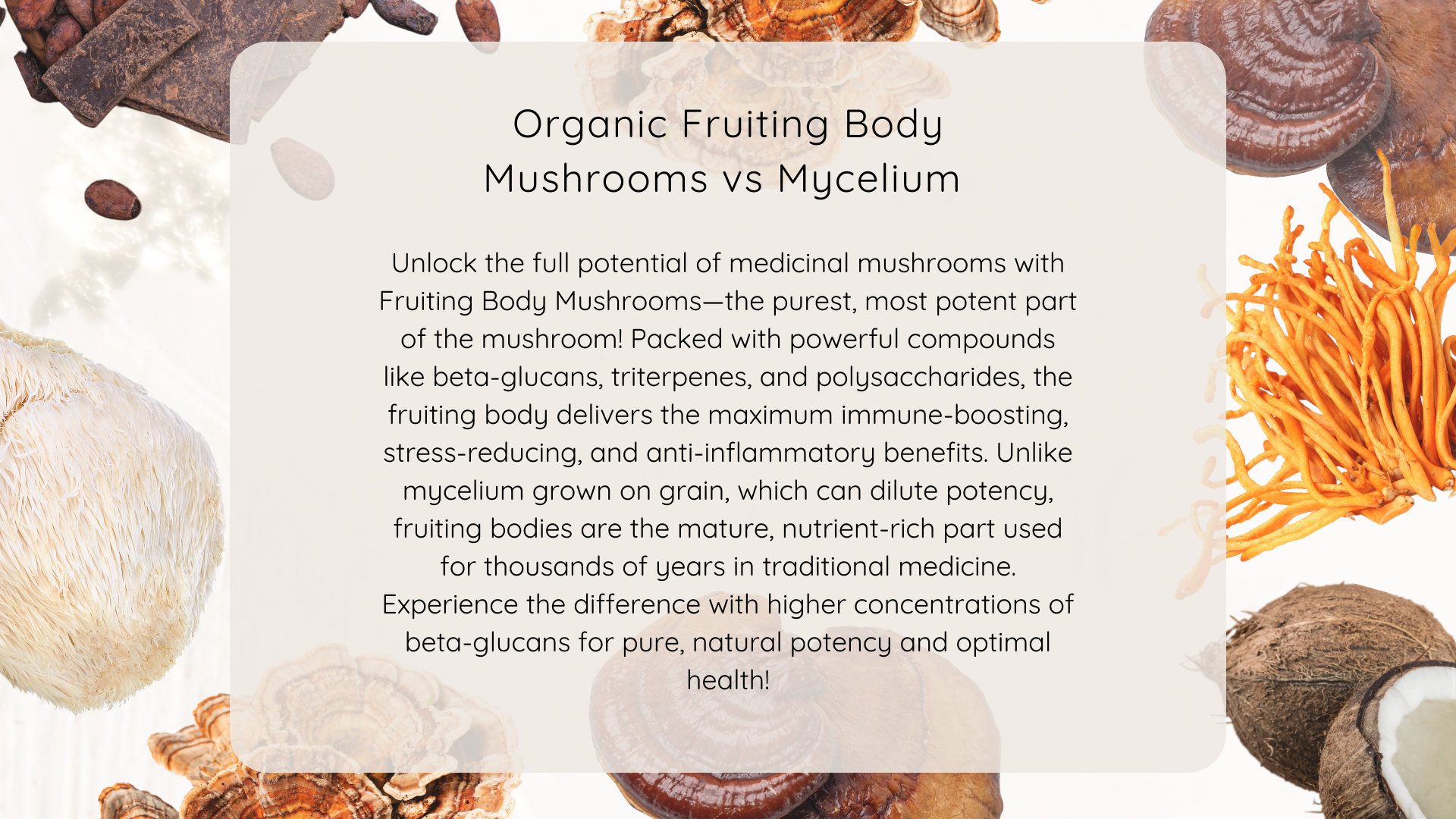 Since I began blending medicinal mushrooms for my health, I’ve experienced a significant boost in vitality, cognitive support, and resilience in my immune system. The energy I feel is not jittery, but more of a sustained sense of strength that carries me through the day. Blending these mushrooms has been a game-changer; each one brings something unique, and together, they create a balanced synergy that nourishes my entire body. It’s like nature’s perfect formula for total wellness!”